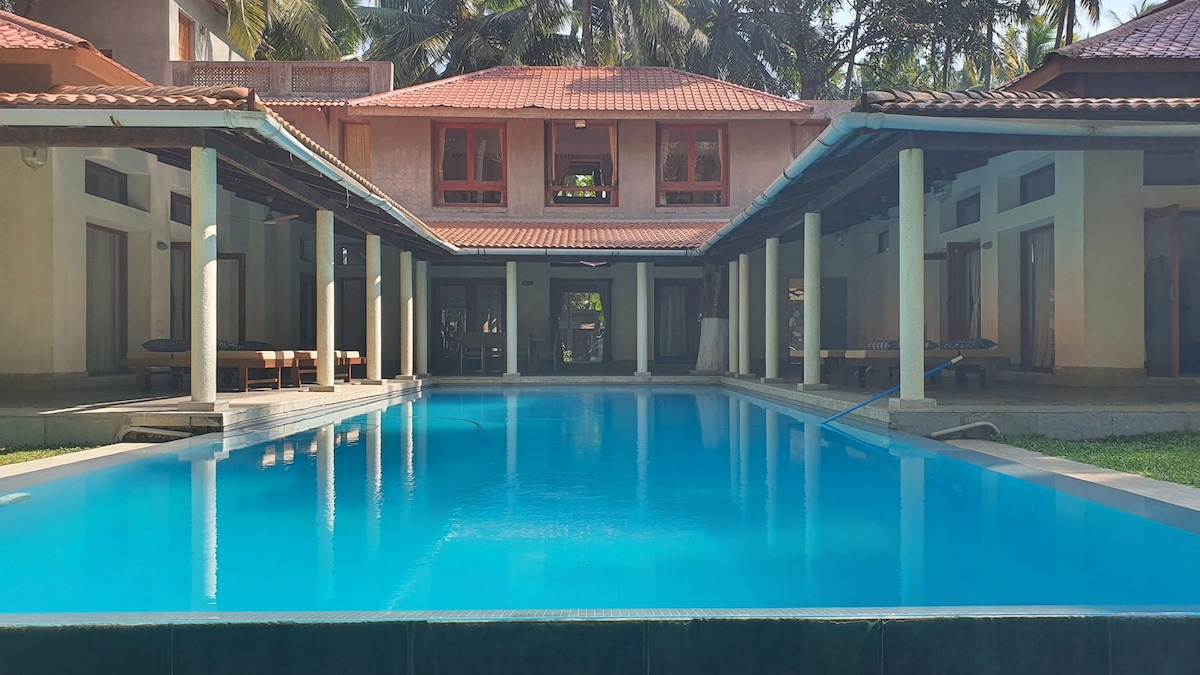 Terletak di pasir yang tenang di Pantai Nandgao, kediaman ini adalah tempat keindahan alam semula jadi bertemu dengan pesona abadi. Dengan buaian rajut yang bergoyang di bawah pokok palma, halaman untuk minum teh, dek untuk matahari terbenam, dan gazebo untuk perayaan, ia adalah tempat percutian tepi pantai yang sempurna, lengkap dengan hiburan penuh nostalgia dan keseronokan yang tidak berkesudahan! Rumah 4 bilik tidur yang cantik dengan ruang makan, meja Snooker dan ruang tamu yang luas yang menampilkan tempat duduk mewah, TV, dan koleksi buku terpilih yang menjemput anda untuk berehat.