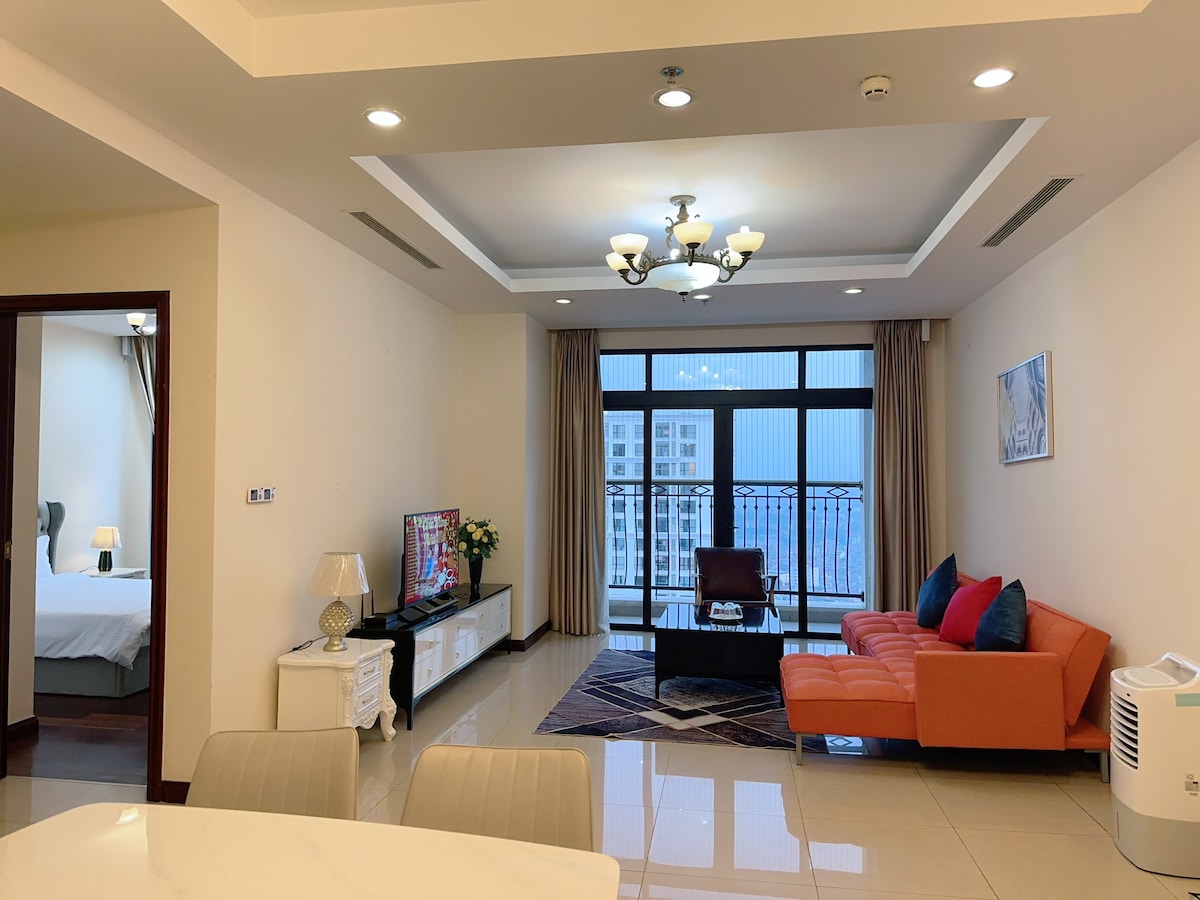 Apartmen dengan keluasan lebih daripada 110m2, terletak di kawasan bandar bandar Vinhomes Royal, yang mempunyai lokasi pusat. Di kompleks bandar, terdapat pusat komersial terbesar di Vietnam, gelanggang luncur ais dalaman, kawasan permainan kanak-kanak. Apartmen ini sesuai untuk keluarga yang mengembara kerana berdekatan dengan tempat yang menyeronokkan. Dan sesuai untuk tetamu perniagaan kerana mudah untuk bergerak antara lokasi.