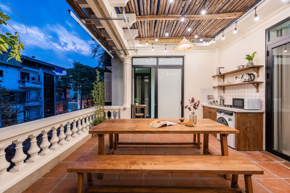 Ini adalah penthouse dupleks 170m2 di hotel butik kami yang baru dibuka di daerah Hoan Kiem. Reka bentuknya bergaya dengan sentuhan seni tempatan, pencahayaan semula jadi yang menjangkau setiap sudut apartmen. Jalan-jalan di Nam Ngu dipenuhi dengan vila kolonial dan rumah-rumah tradisional Vietnam. Pada asalnya, ia adalah sebuah penempatan kecil di mana tukang dan peniaga mendirikan rumah dan bengkel mereka. Kejiranan meriah pada waktu pagi dengan banyak restoran yang baik dan makanan jalanan tempatan yang terkenal di sekitar.