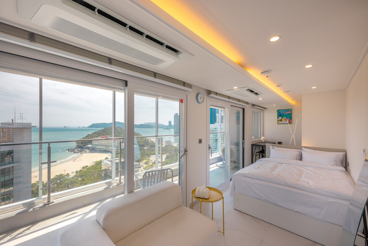 [ST_01] Penginapan yang sah! Pemandangan Laut Panorama Haeundae@2 katil@3 minit dari stesen kereta api bawah tanah + 5 minit dari pantai