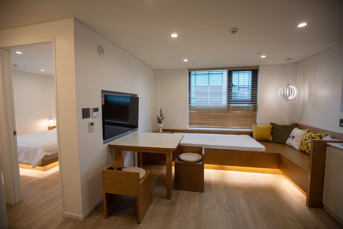 Di tengah-tengah Seoul di mana bandar ini bersinar lebih terang pada waktu malam — selamat datang ke Dongdaemun. Tidak seperti jalan-jalan yang sibuk di luar, tempat kami menawarkan penginapan yang tenang dan selesa dengan nada kayu yang hangat dan pencahayaan yang lembut — tempat yang sempurna untuk berehat selepas hari yang panjang. - 10-15 minit berjalan kaki ke DDP & Doota Mall - 5-10 minit berjalan kaki dari Pintu Keluar 6 (atau Pintu Keluar 4 untuk lif) Stesen Taman Sejarah & Kebudayaan Dongdaemun (Laluan 2, 4, 5) - Dari lapangan terbang: ambil Bas 6001 ke hentian Baiton Hotel (2–5 minit berjalan kaki)