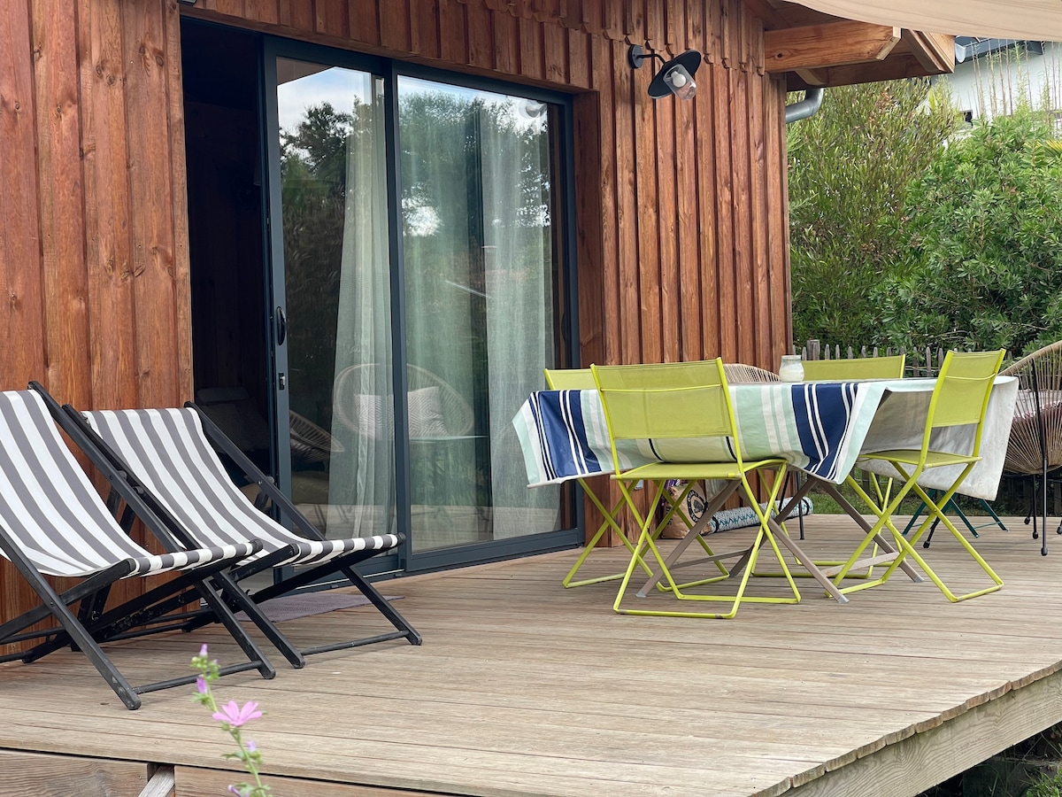 Penginapan unik ini berhampiran dengan semua tapak dan kemudahan, yang terletak di antara Biarritz dan Hossegor, ia berjarak 2 langkah dari terminal bas trem dan 5 minit dari pantai di pantai Landes. Ia menawarkan anda pemandangan hutan yang indah di kejiranan yang tenang. Ia termasuk 2 bilik tidur, ruang tamu, dapur yang dilengkapi dengan bilik mandi kecil yang cantik dan teres yang besar. Semuanya diperbuat daripada kayu seperti kabin tradisional Cap Ferret, selesa, bergaya, sangat mudah diakses dan terlindung dengan baik.