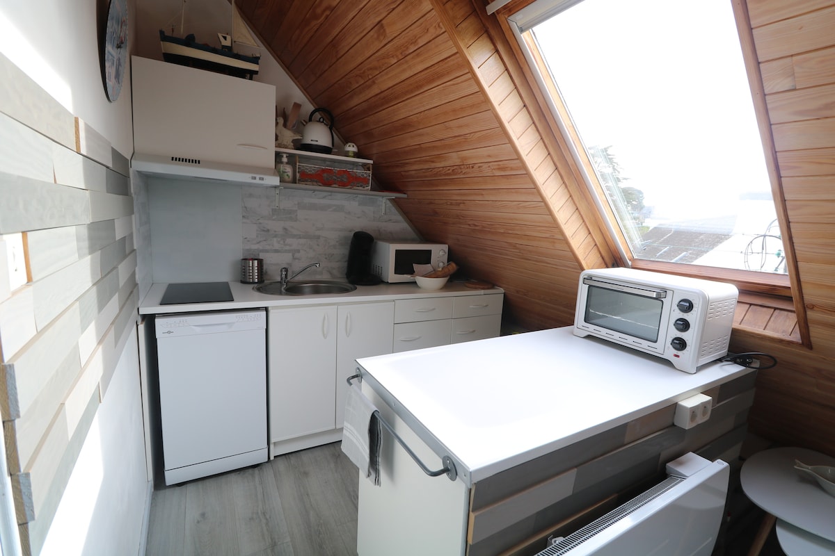 En plein coeur de Douarnenez , situé dans une rue calme, ce duplex de charme (rénové en 2020) vous propose un coin cuisine équipée , un accès wifi ou RJ 45 selon votre sensibilité. Au 3eme étage d'une maison d'artiste , vous dormirez sous les toits au plus prêt des étoiles. TOUT A PIED:, plages, marché quotidien, commerces ( supérette et crêperie en face), restaurants, musée du bateau, les plomarc'h, parkings, si vous arrivez en bus il vous suffit de 5 min pour vous rendre à la location.