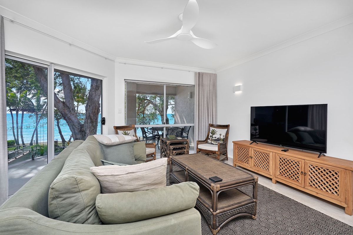 Nestled in a tightly held, secluded estate, this 2-bedroom apartment is a masterclass in coastal design. By eliminating the road between the home and the tide, the residence offers an immersive oceanfront experience rarely found in North Queensland. The layout is a clever dialogue between two landscapes: one side embraces the sparkling expanse of the Coral Sea, while the other looks back into a tranquil bushland canopy.