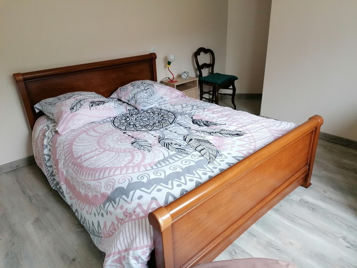 Rumah kami terletak 5 minit dari pusat bandar Champagnole, kedai dan restoran, kawasan yang sangat pelancong dengan tasik dan air terjunnya, bilik tidur dan ruang tamu seluas 45 m² dengan TV, pembuat kopi, pembuat teh, peta dan panduan hiking adalah bebas dan di tingkat atas serta bilik mandi dan tandas yang peribadi, cadar mandi dan jubah mandi yang tersedia, kami tinggal di tingkat bawah, sarapan dihidangkan sama ada di ruang tamu atau di ruang tamu kami atau di luar.