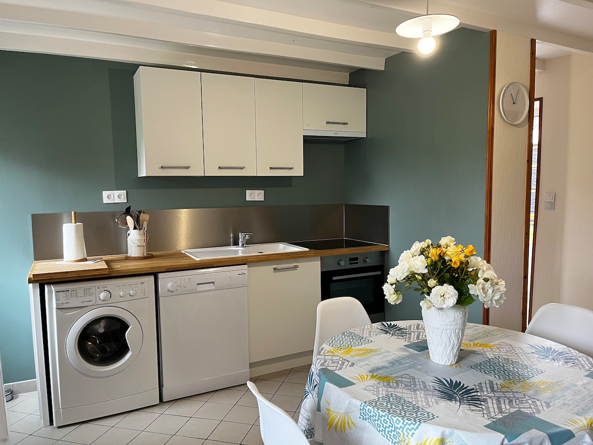 Datang dan nikmati rantau ini di rumah batu kecil yang terletak di kawasan desa, di Sottevast, semenanjung Cotentin, jarak yang hampir sama dari 3 pantai: Cherbourg dan La Hague, Barneville-Carteret dan pantai pendaratan. 5 minit dengan kereta dari mana-mana perniagaan. Tingkat bawah: ruang tamu 30m2 dengan dapur dan dapur yang lengkap + mesin basuh/ wifi Lantai: 1 bilik tidur +bilik mandi ( pancuran mandi, tandas ). Teres yang terdedah dengan baik, tenang dengan barbeku + taman yang cerah dan teduh dengan kerusi dek.