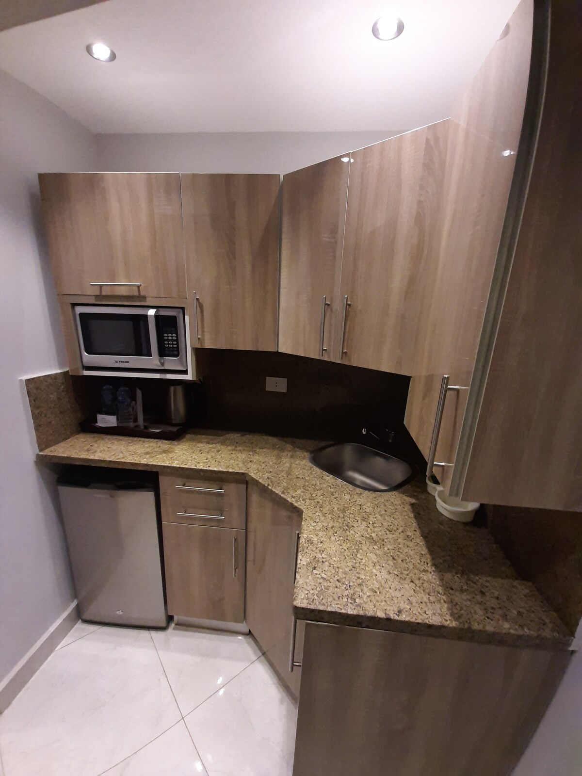 The room has a private bathroom. The bedroom is spacious, air-conditioned with 1 comfortable queen sized bed and a wardrobe. The living area features a flat-screen TV, free WiFi, cable television, minibar, and a kettle. The bathroom is clean and modern. The property provides guests with clean bedsheets, towels, and extra pillows.