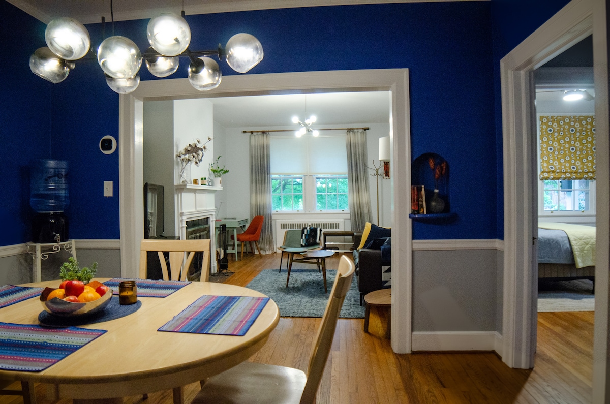 Experience Duke at its best from our centrally located duplex between East & West Campus. With the campus bus stop right outside, easily explore Duke, Durham's museums, and local restaurants. Enjoy the perfect blend of comfort and style, featuring Little Waves coffee, a retro bathroom with eco-friendly products, and hotel-quality bedrooms. Duke Hospital is just minutes away, making our home ideal for your stay. Live like a Blue Devil at the heart of Duke and Durham. Book now.
