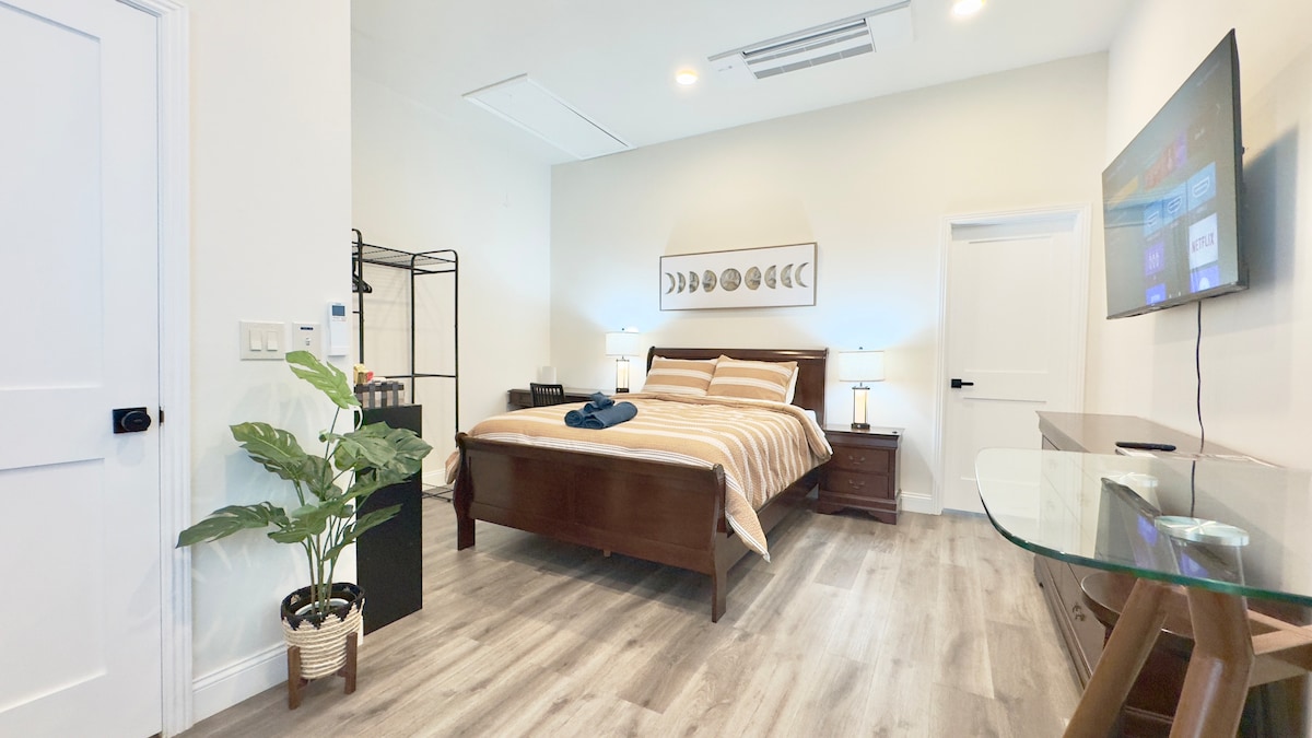 Suite tetamu yang baru diubahsuai, hanya beberapa langkah dari SJSU. Rumah utama menjadi tempat firma seni bina butik, menambah tenaga kreatif pada waktu siang manakala waktu malam kekal tenang. Percutian ini menawarkan keselesaan moden di lokasi utama Silicon Valley. Dengan akses pantas ke I-280, Hwy 87, dan Hwy 101, anda hanya beberapa minit dari Caltrain, Lapangan Terbang SJC, Pusat Konvensyen, Pusat SAP, Stadium Levi, dan pusat bandar San Jose. Sesuai untuk perniagaan atau riadah, suite ini menggabungkan gaya dan kemudahan untuk penginapan yang selesa.