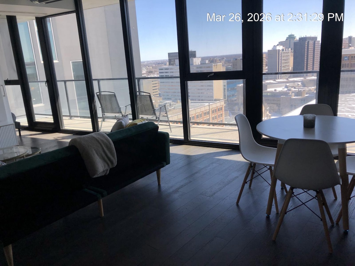 Nikmati pengalaman bergaya di kondominium yang terletak di pusat bandar ini. Balkoni persendirian Menghadap stadium Jets!Anda akan mendapat pemandangan dari balkoni peribadi anda daripada semua keseronokan yang ada di pusat bandar Winnipeg. Patio bumbung menghadap kawasan pusat bandar yang indah dan merupakan tempat yang sesuai untuk kebakaran atau sesi penggambaran yang selesa. Terletak di pusat bandar dan jarak berjalan kaki ke tempat makan, membeli-belah, dan stadium MetLife. Bumbung kami menawarkan pemandangan 360 darjah bandar. Nikmati penginapan yang santai di salah satu lokasi yang paling diingini di seluruh Winnipeg.