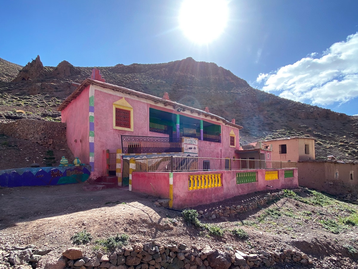 Rumah tetamu saya terletak di kampung Magdaz, kira-kira 300 meter dari jalan. Sila maklumkan kepada kami sebelum anda tiba di kampung supaya kami boleh menunggu anda di penghujung jalan untuk membantu anda membawa barang-barang anda. Rumah tetamu saya terletak di kampung Magdaz, berhampiran Kasbah tertua di kampung ini, yang berusia 700 tahun, dan di hadapan Kasbah Ait Hassou, yang merupakan Kasbah terbesar di High Atlas dari segi kawasan dan bilangan tingkat di dalamnya.