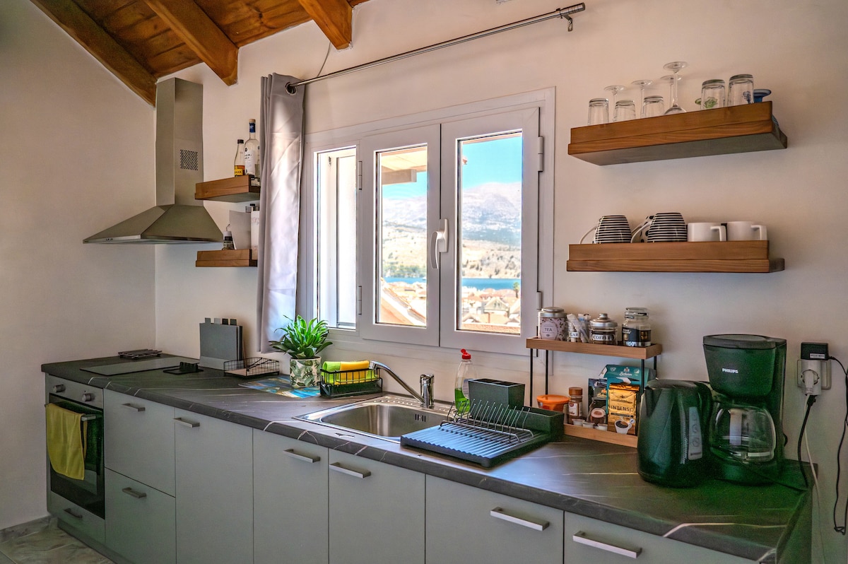 Rumah ini diperbuat daripada batu dan dibina pada tahun 2020 dengan gaya tradisional kampung lama sebagai standard. Ia terletak di kawasan kejiranan Makryotika yang lebih tinggi, sebuah kampung separa pergunungan yang cerah dengan iklim mikro yang sangat baik. Ia dibina secara amfiteater dengan pemandangan ke teluk Agia Efimia, di mana kebanyakan perkhidmatan terletak. Selain itu, pantai Myrtos yang terkenal hanya 10 minit perjalanan dengan kereta. Di dataran yang indah ini anda akan menemui Pasar Mini dan dua kedai arak dengan masakan tempatan yang lazat.