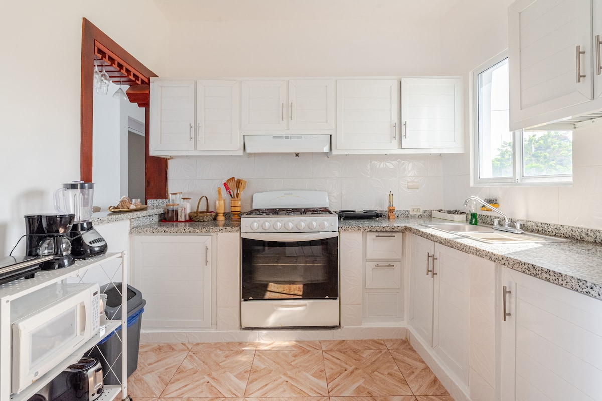 Terokai keselesaan dan kemudahan di tempat percutian 3 bilik tidur kami, yang terletak di atas bukit yang tenang hanya dengan memandu singkat dari pantai dan tarikan Nagua yang indah. Rumah ini menawarkan Wi-Fi, AC di semua bilik, kipas siling, inverter, dan tempat letak kereta percuma. Dari tempat yang tinggi, anda boleh melihat pemandangan laut yang jauh dan menikmati angin sejuk di kawasan yang tenang dan selamat berhampiran dengan restoran, kedai, dan tarikan tempatan.
