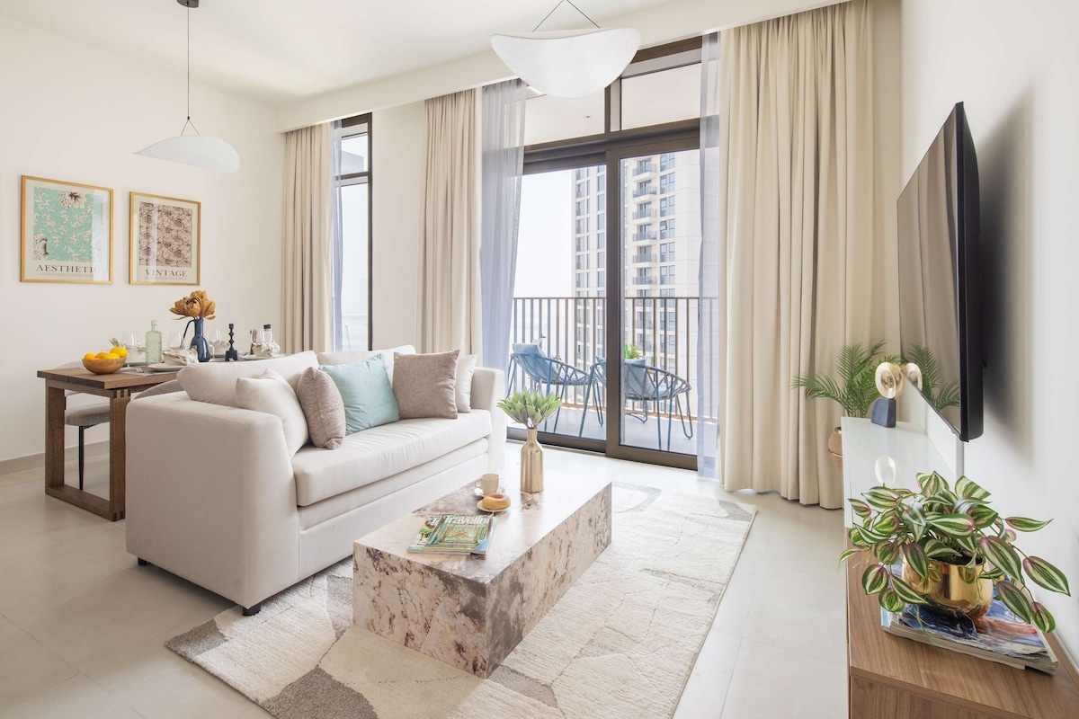 Luxe 1BR dengan Netflix & Balkoni di Creek Harbour