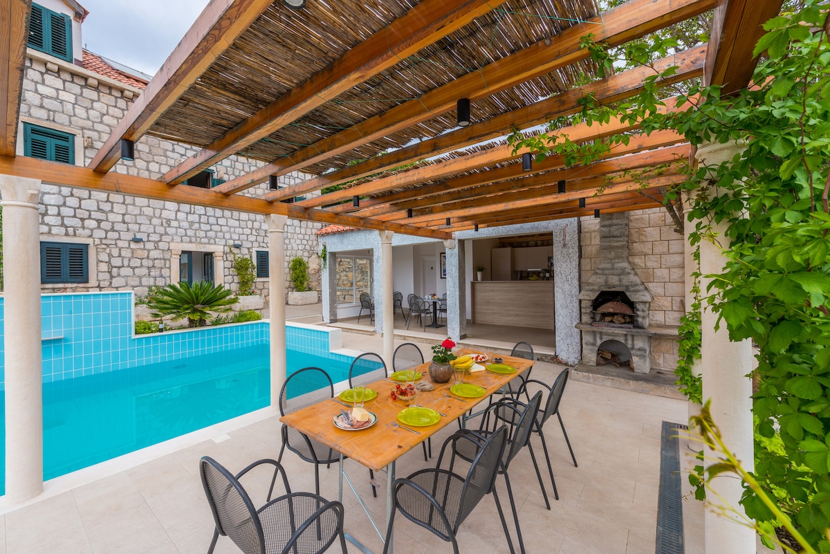 Oasis yang damai di tempat terpencil yang dikelilingi oleh alam semula jadi. Di tepi laut dan arboretum yang indah. 10km dari Dubrovnik. Dalaman yang luas dan moden, dengan perabot yang berkualiti dan baru. Rumah ini dibekalkan dengan tambahan khas seperti kolam renang luaran, sauna, piano...