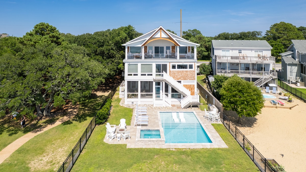 Rumah Pantai OBX + Kolam Renang. Matahari Terbenam & Laluan Laut