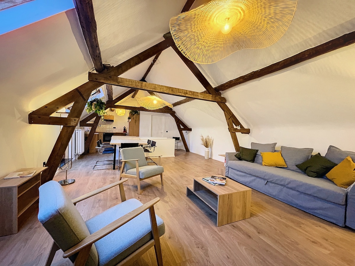 Loteng 110 m² sangat cerah tepi Bxl dan Forest terletak di tingkat 2 bangunan. Airbnb sebenar (penginapan peribadi) Tempat letak kereta mudah di hadapan pintu masuk. Di jalan utama tetapi sedikit bunyi bising kerana pemandangan taman dan tidak terlepas pandang. TV, wifi. Pam haba (panas dan sejuk). Dapur lengkap dilengkapi mesin basuh pinggan mangkuk, dapur kaca... Ruang tamu dengan sofa sudut sudut boleh tukar dan 1 clic-clac. Bilik mandi dengan pancuran mandi, tandas, mesin basuh dan pengering. Kawasan tidur dengan katil kelamin 160cm. Makanan/parti tidak dibenarkan