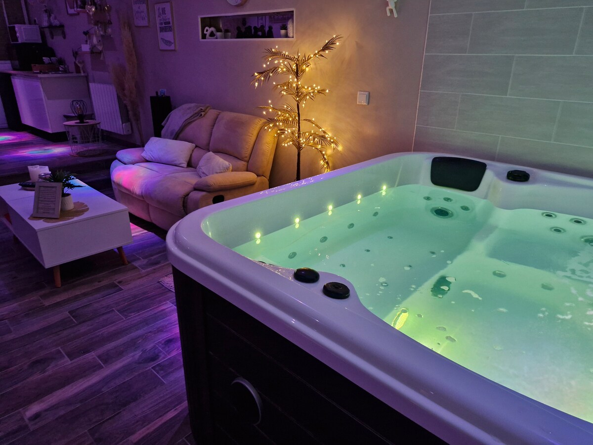 Penginapan menawan terletak di Ruminghem Nikmati detik romantik dalam privasi sepenuhnya di kawasan santai peribadi anda yang menghadap ke teres Sauna batu dengan minyak monoi Bersantai di tab mandi air panas, diurut oleh berbilang jet dengan bluetooth terbina dalam! Dapur yang lengkap membolehkan anda makan di tapak peti sejuk, dapur elektrik, ketuhar, ketuhar gelombang mikro, mesin kopi Senseo dengan pod Katil saiz king Termasuk sarapan tempat letak kenderaan persendirian / wifi Penghantaran pizza boleh dilakukan.
