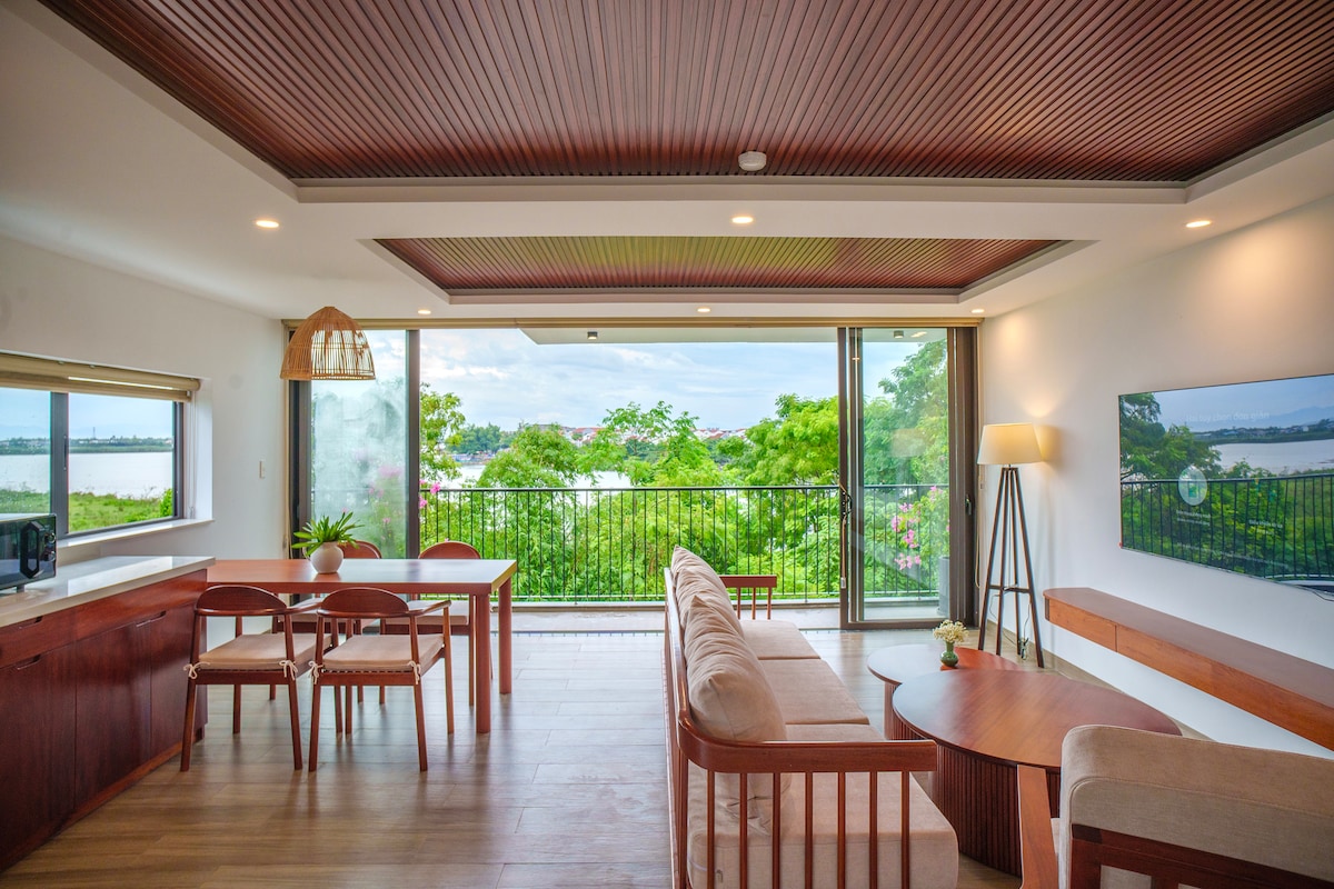 Terletak di lorong kecil di jalan selari dengan tepi sungai, rumah kami hanya beberapa langkah dari Sungai Hoai. Rumah ini mempunyai dapur dan ruang tamu yang luas, dan setiap bilik tidur mempunyai tingkap dan balkoni yang dipenuhi dengan cahaya matahari dan angin dari kedua-dua sungai di kedua-dua belah. Terletak betul-betul di pinggir Bandar Lama, hanya 300m dari Jambatan Tertutup Jepun, dikelilingi oleh kafe, restoran dan kedai. Sesuai untuk sebuah keluarga yang terdiri daripada 6 orang dewasa.