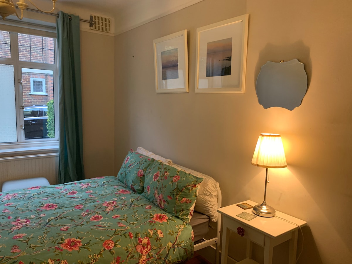 Lokasi yang ideal untuk semua perkara di London! Tempat letak kereta, berjalan kaki singkat ke Underground (Tube) dan banyak Bas yang semuanya berdekatan. Banyak ruang untuk 4 tetamu, ruang tamu dengan TV pintar dengan banyak saluran. Dapur lengkap dengan segala yang diperlukan untuk makanan yang dimasak di rumah Bilik mandi moden dengan tab mandi/pancuran mandi dan cermin besar yang terang dan kemudahan. Bilik tidur utama mempunyai katil bersaiz king, dan bilik tidur ke-2 mempunyai katil kelamin. Tilam selesa yang tinggi. Akses ke taman persendirian dengan meja dan kerusi.