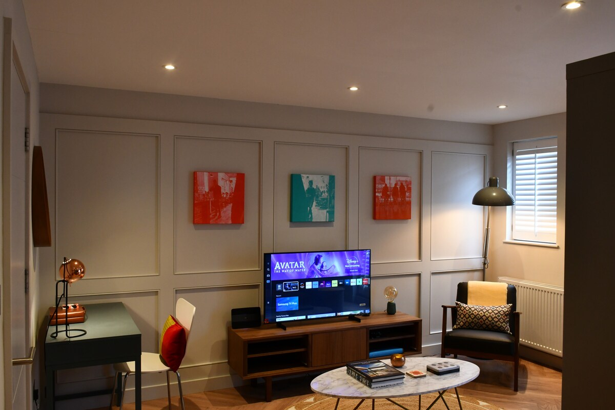 ¡Selamat datang ke ruang moden anda di London! Studio baharu ini menggabungkan keselesaan dan gaya bandar di tengah-tengah Ealing. Reka bentuknya yang bersih dan berfungsi menjadikannya sesuai untuk pengembara solo, pasangan, atau kumpulan kecil, dengan ruang untuk hingga tiga tetamu dengan katil sofa yang selesa. Sesuai untuk berehat selepas seharian meneroka bandar, bekerja dari jauh, atau menikmati percutian santai dengan segala yang anda perlukan.