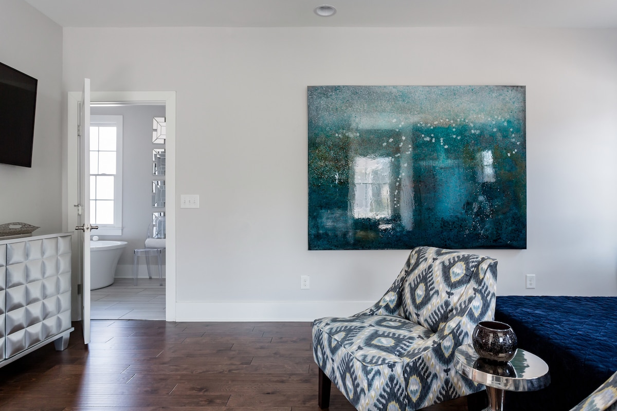 Ruang tetamu artisan mewah yang cerah dan terbuka. Dibina khas dan lengkap dengan dapur penuh, bilik tidur loteng, ruang kerja, pendiangan, kertas dinding yang dipesan lebih dahulu dan seni tempatan di seluruh kawasan. Apabila cahaya semula jadi mengalir melalui tingkap tinggi dan jendela langit, Gwyneth adalah ruang yang sempurna untuk percutian Nashville yang intim dengan teman wanita atau pasangan, atau percutian solo yang memberi inspirasi. Atas sebab keselamatan dan kebersihan, ruang ini tidak dianggap sesuai untuk haiwan peliharaan atau kanak-kanak.