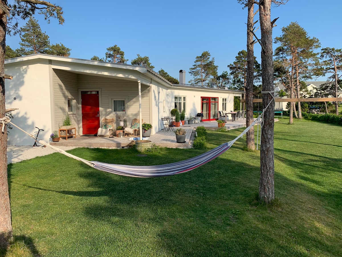 Dengan 5 minit berjalan kaki ke laut atau 5 minit memandu ke padang golf terbaik Sweden, vila yang indah ini dari tahun 2016 adalah penginapan yang sesuai untuk keluarga yang mahukan matahari dan berenang dan kumpulan golf yang ingin bermain di Visby Golf Club. Patio besar, 5 katil dan akses kepada tilam tambahan. Sauna disertakan dan haiwan peliharaan dialu-alukan dan boleh berkeliaran di taman berpagar yang besar. Perhatian: Harap maklum bahawa cadar, tuala dan pembersihan tidak termasuk.