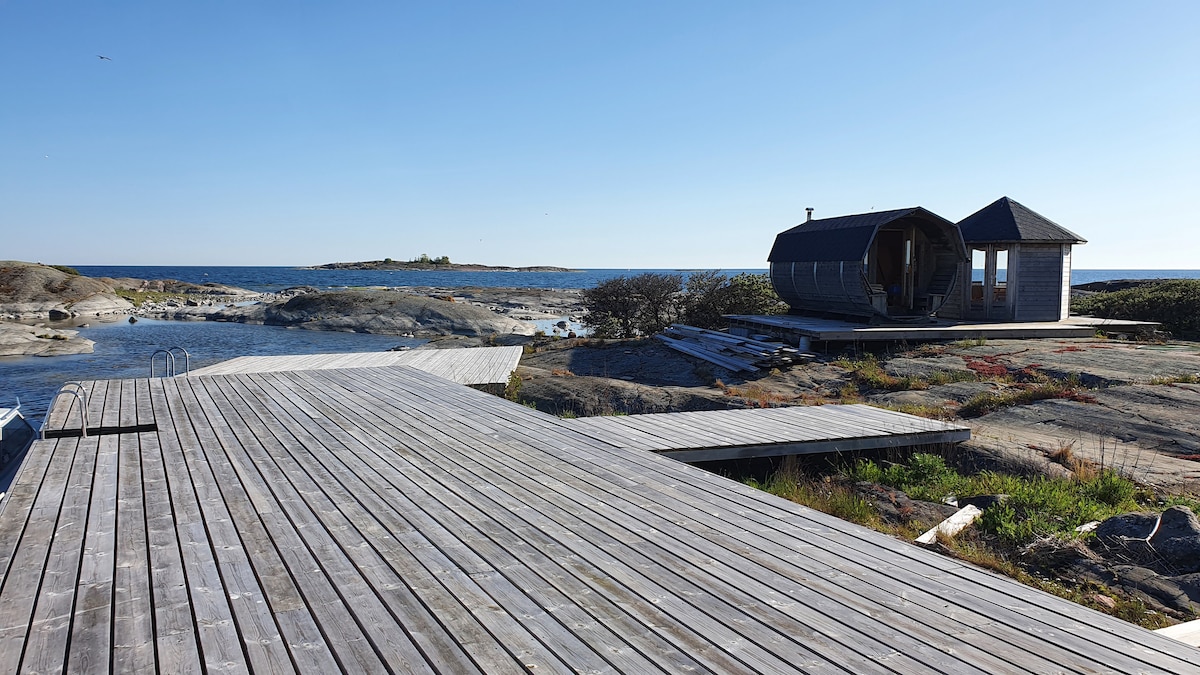 Selamat datang untuk tinggal di pulau kepulauan anda sendiri dengan kehidupan burung yang kaya (satu pengalaman!)Kotej ini mempunyai dapur (dapur gas/ketuhar)/ruang tamu dan bilik tidur. Terdapat sauna kayu api dan teres yang luas serta tandas luar yang bersih. Semuanya dibina baru dan terdapat bekalan elektrik/air! Pondok ini terpencil dan mempunyai pendiangan kayu api. Jika anda sedang mencari tempat anda sendiri untuk membaca buku, mendengar bunyi ombak, burung dan bot di kejauhan - maka anda berada di tempat yang tepat! Pada musim panas, anda akan berada berhampiran dengan padang golf, restoran yang bagus dan pengalaman di seluruh Åland!