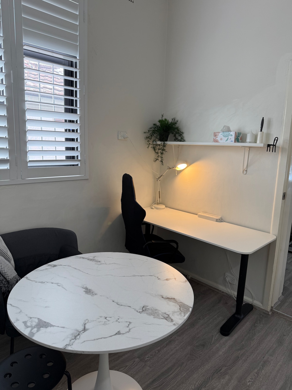 Bilik tidur besar yang terang serta bilik matahari & ruang rehat berasingan yang dibuka ke halaman hadapan (tidak tertutup). Dapur kecil menawarkan ketuhar gelombang mikro, cerek, mesin kopi, pembakar roti, penggoreng udara, bahagian atas memasak, dan peti sejuk bar. TV kabel dengan Netflix. Apartmen ini bersambung dengan rumah utama tetapi mempunyai pintu masuk persendirian dan tiada kemudahan atau ruang berkongsi.