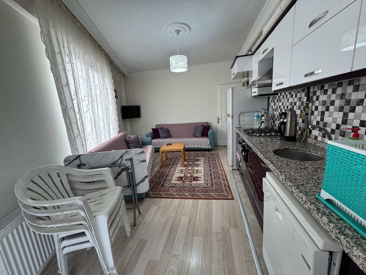 Apartmen 1+1 kami, yang terletak di lokasi pusat, 2 minit berjalan kaki dari pantai Yeni Kordon, mempunyai kemudahan dapur dan balkoni yang berasingan. Apartmen ini mempunyai TV, Mesin Basuh, Peti Sejuk saiz besar, Wi-Fi. Semua bekalan dapur yang anda mungkin perlukan tersedia. Memuatkan sehingga 3 orang dengan katil 2 orang dan katil sofa. Semasa anda menginap di apartmen kami, anda boleh memanfaatkan kemudahan dan lokasi pusat ini.