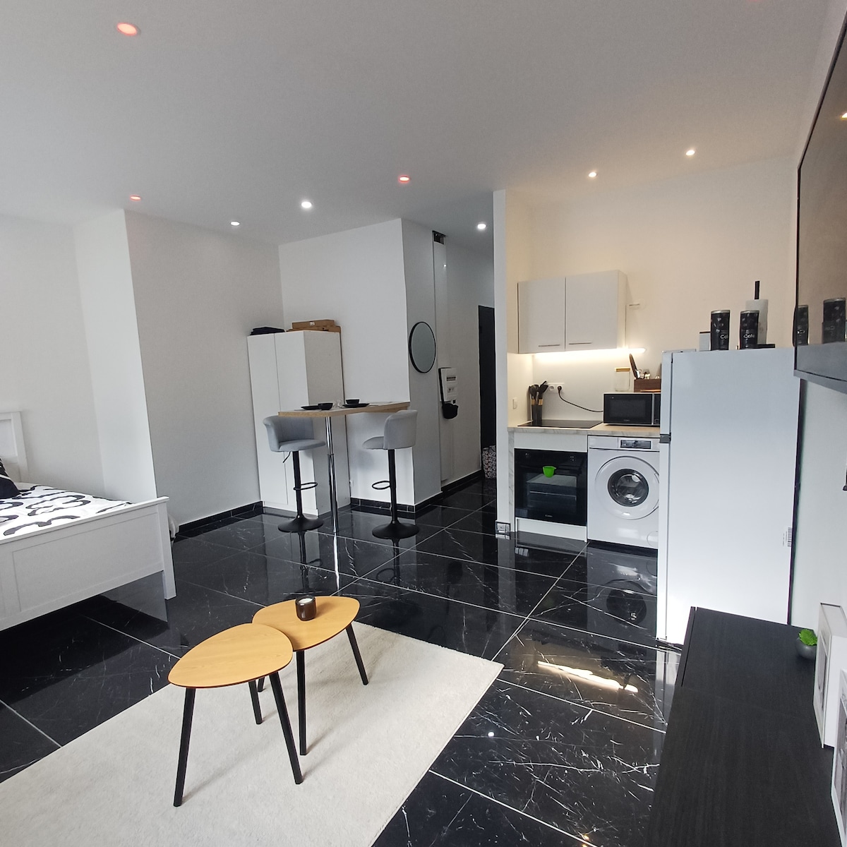 Studio kami sangat dekat dengan pengangkutan (trem A: 3min berjalan kaki, trem B: 8min), stesen kereta api (10min) dan permata (10min). Semua kedai, bar, restoran dan dewan konsert beberapa blok jauhnya. Pusat bandar Grenoble berjarak 15 minit berjalan kaki. Penginapan ini dicipta pada awal tahun 2024, ia cerah dan dilengkapi dengan sempurna. Tingkap, berhadapan dengan jalan yang sangat senyap, berhadapan dengan taman rumah. Katil 140 baru boleh memuatkan 2 orang, dan pemandu membenarkan katil ke-3 yang selesa.
