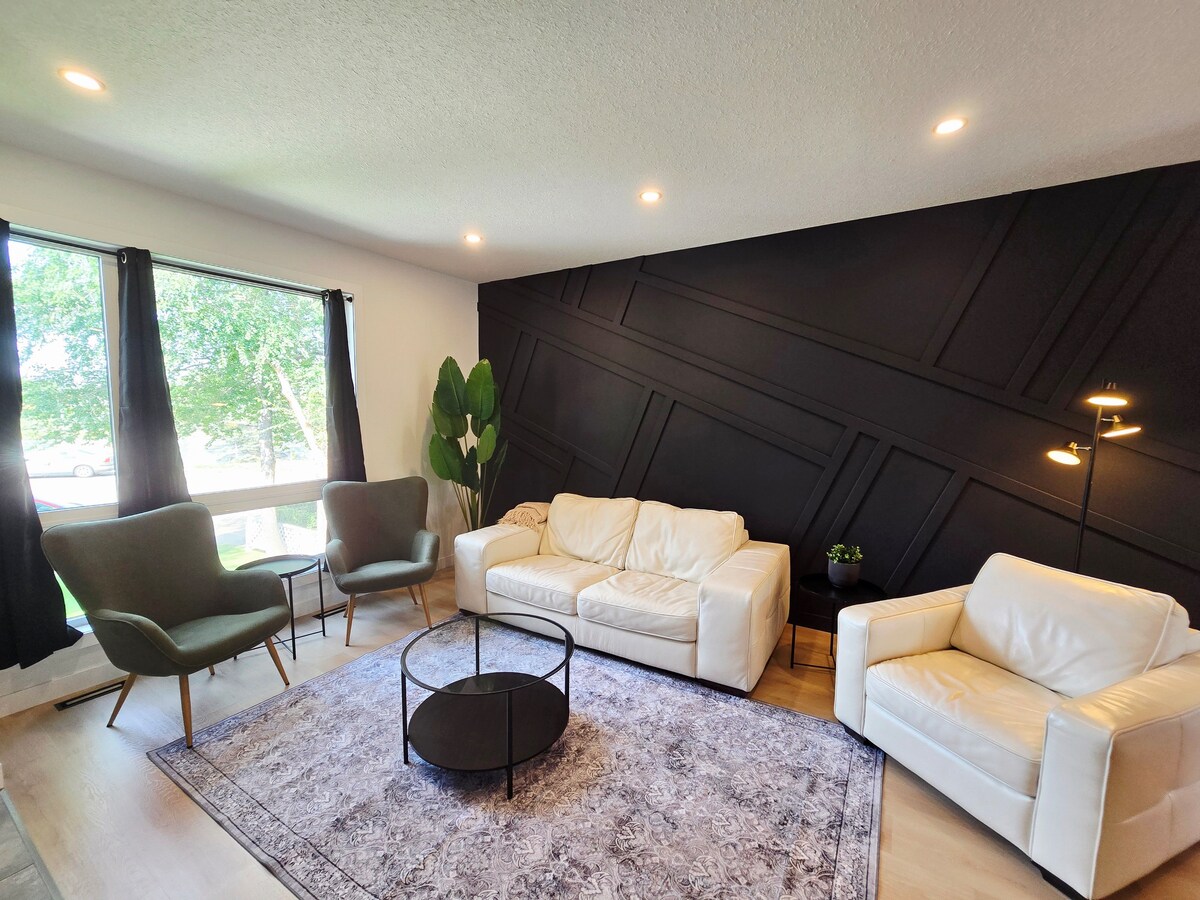 Welcome to our lush and nostalgic blend of mid-century modern and 70's era suite in Regina! Discover the perfect blend of retro flair and modern comfort with a dedicated workspace, a large TV and sectional couch, and vibrant plants that add a touch of nature. With a prime location next to the multi-use pathway along the creek, close to shopping, dining, and entertainment, this unique oasis is sure to steal your heart. Book now and experience a calm and rejuvenating stay!