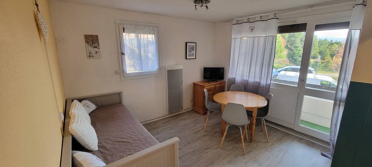 Studio kabin (1 katil dua tingkat kabin) (1 sofa katil di ruang tamu) dipisahkan oleh pintu. Dapur kecil dan balkoni yang lengkap dengan pemandangan Cerdagne yang indah ☀️⛰️ Penginapan yang sangat tenang berhampiran pusat bandar di mana semua kedai terletak (pasar raya, restoran, kedai keju, dll.)🧀🍷 Aktiviti: ski🎿, mendaki, ladang🐐, ketuhar suria, mandian air panas…🧖♀️ parkir percuma di kaki kediaman 🚗 Linen dan tuala tidak disediakan. Bantal, sarung tilam, selimut di tapak.