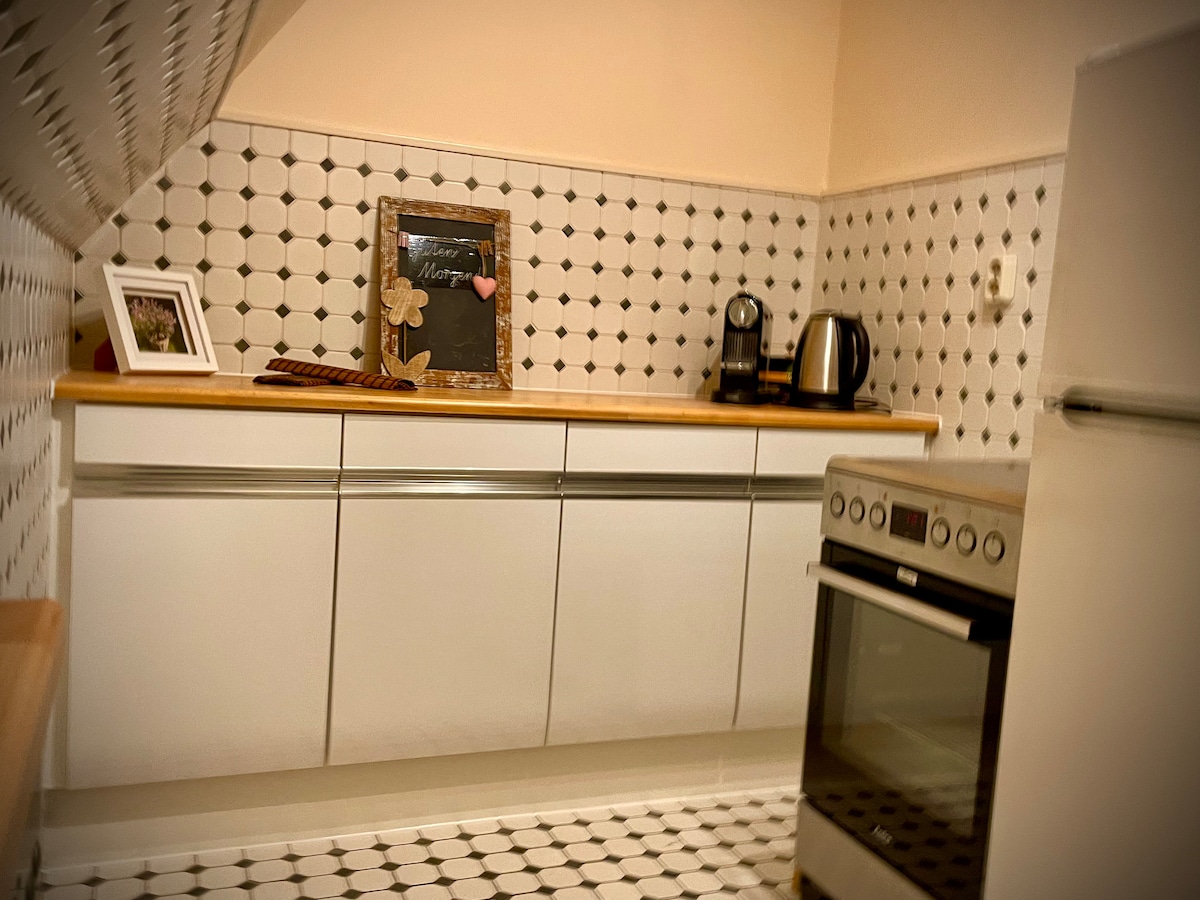 Apartmen kami yang berkeluasan kira-kira 90 meter persegi terletak di daerah Norderstedt Glashütte, betul-betul di Speckgürtel barat laut Hamburg. Pusat bandar Hamburg boleh dicapai dalam masa kira-kira 1/2 jam dengan kereta, kawasan sekitarnya dalam masa kira-kira 20 minit dengan berjalan kaki. Apartmen yang diterangi cahaya matahari ini berwarna-warni dan dilengkapi dengan perabot yang ceria serta mempunyai TV besar dan dapur yang serba lengkap. Ruang letak kereta tetamu terletak betul-betul di atas penginapan.