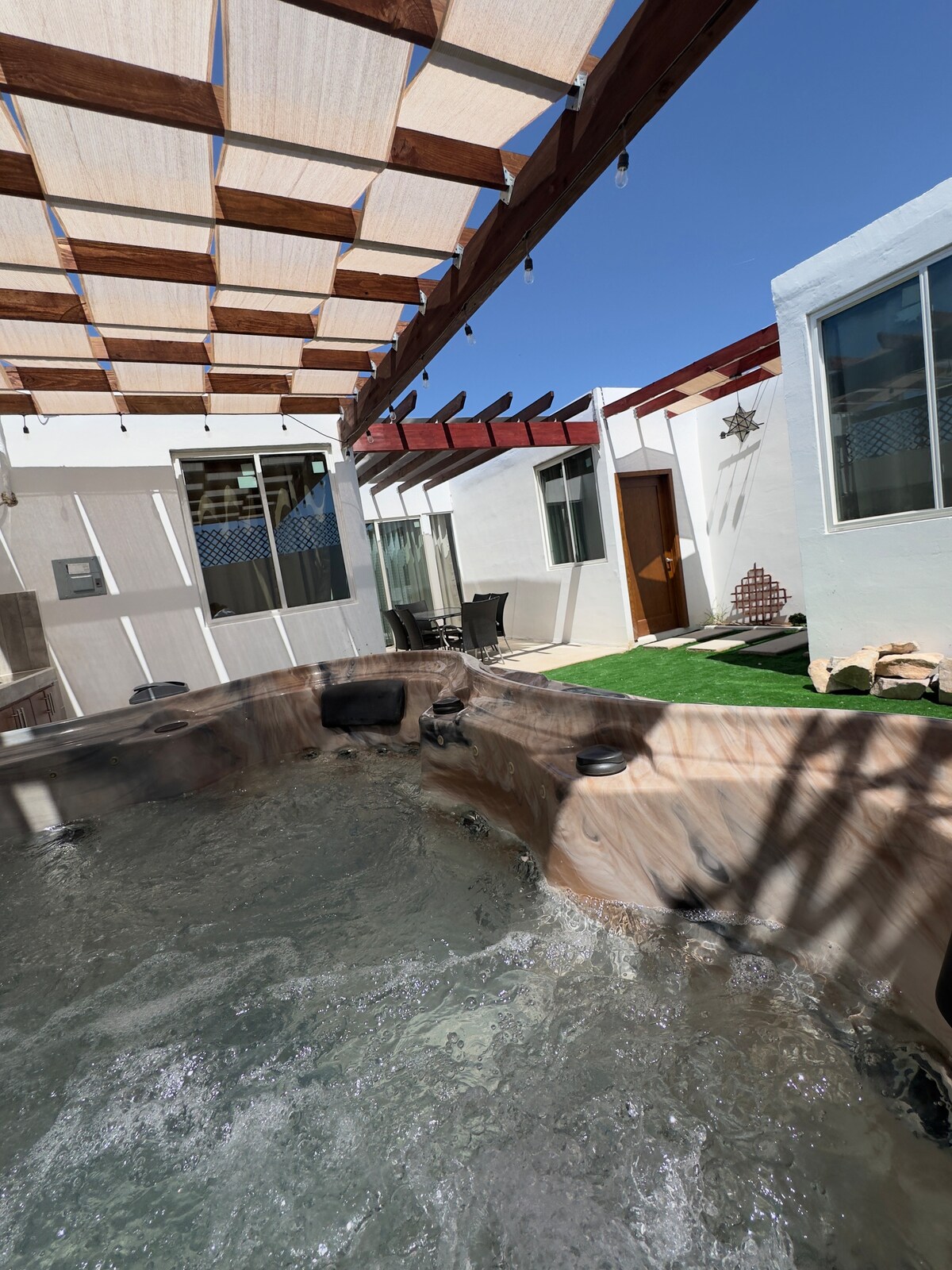 Oasis gurun anda yang indah akan memikat anda dari saat anda tiba. Komuniti berpagar kami yang selamat menawarkan dua kolam renang yang hebat, pantai persendirian, padang golf kejohanan 18 lubang, gelanggang tenis dan pickleball, dan suasana dengan laut di satu pihak dan puncak gunung di pihak yang lain. Kami ada ramai tetamu berulang -- kediaman kami yang bersih dan selesa menawarkan yang terbaik dalam kesendirian dan berdekatan dengan semua yang ditawarkan oleh San Felipe. Restoran hebat berhampiran, kampung tepi laut yang kuantiti dan tulen, dan orang yang mesra.