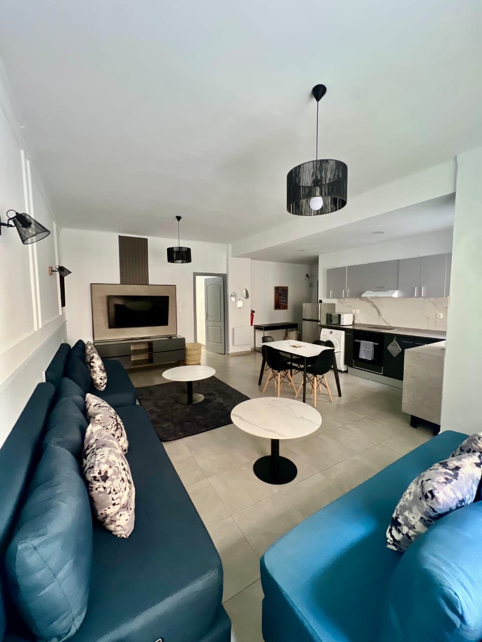 Selamat datang ke F2 48m2 kami yang bergaya, diubahsuai sepenuhnya oleh arkitek terkenal, menggabungkan estetika kontemporari dengan keselesaan hotel. Terletak di tengah-tengah bandar Algiers, di jalan Hassiba ben Bouali yang berprestij, apartmen ini menawarkan pengalaman penginapan yang tiada tandingan, hanya berjalan kaki singkat dari tapak ikonik.