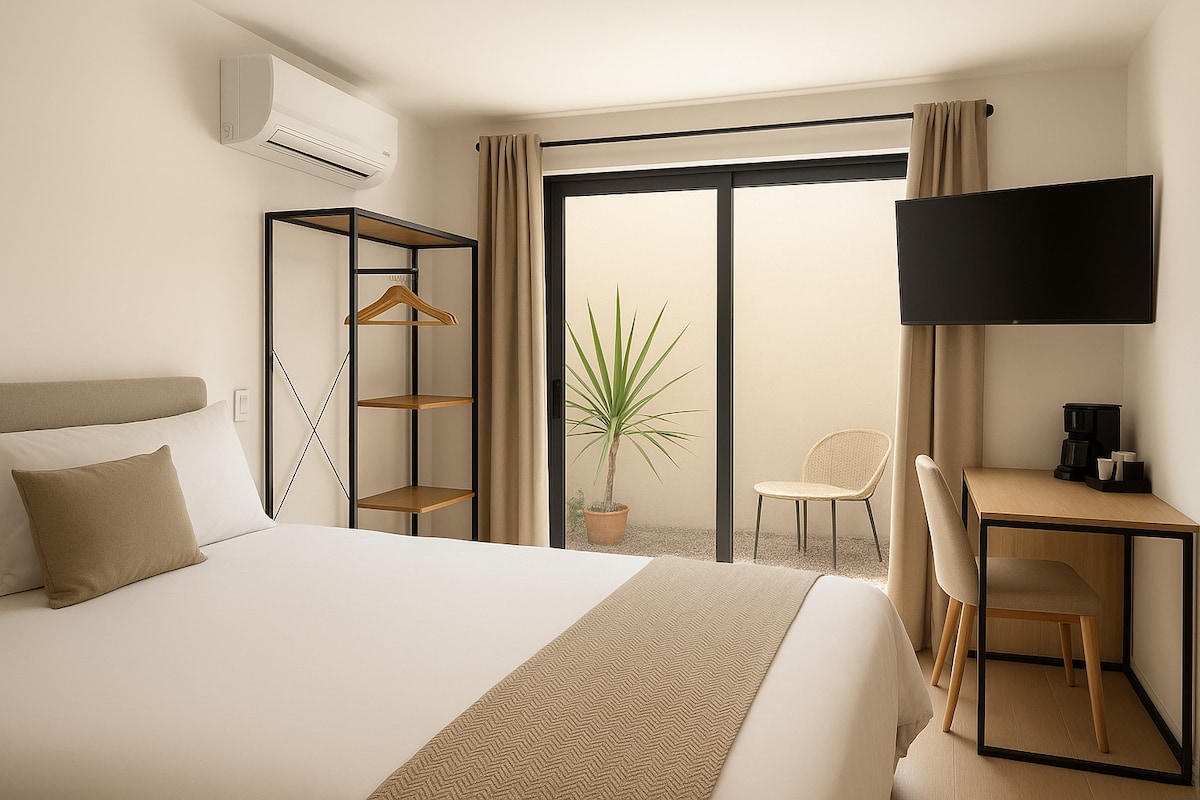 Relájate en este espacio tan tranquilo y elegante. Ven y conoce Ars Boutique Suites un proyecto lleno de arte, con un estilo industrial, acompañadas de unas increíbles vistas, que hará de tu estancia algo diferente. Cuenta con área de coworking, área de TV, bar con terraza para que disfrutes de una buena copa con una increíble vista, además de un área de calistenia.