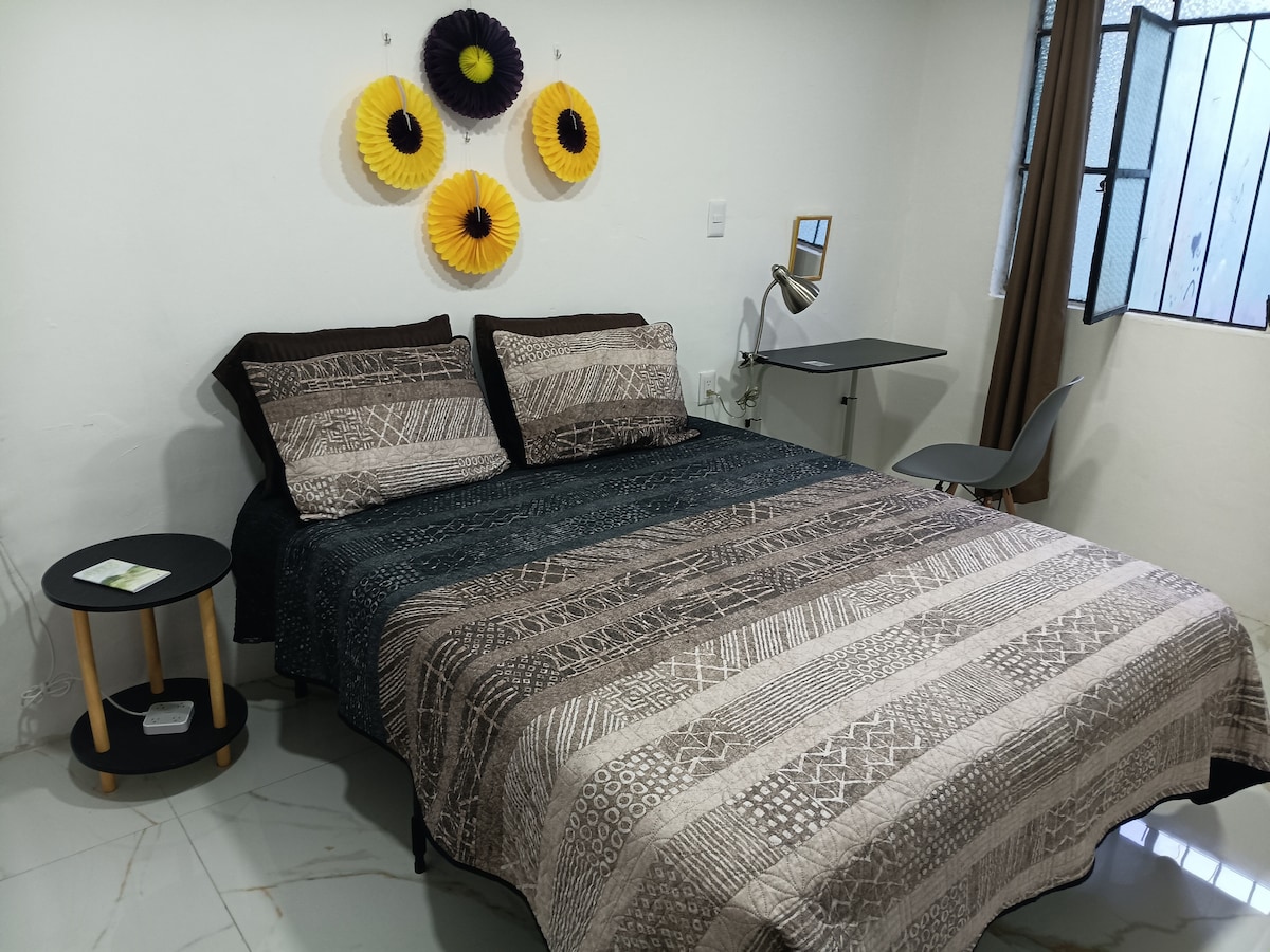 Disfruta de un espacio cómodo y completamente nuevo, ideal para estancias cortas o largas. Este acogedor estudio cuenta con una cama king size, TV, baño completo y una cocineta equipada para que prepares tus platillos favoritos. Además, relájate en su pequeña terraza privada con vista a la ciudad. Perfecto para viajeros, parejas o quienes buscan comodidad y cercanía a los principales atractivos de Tepic. ¡Reserva ahora y vive una experiencia única!