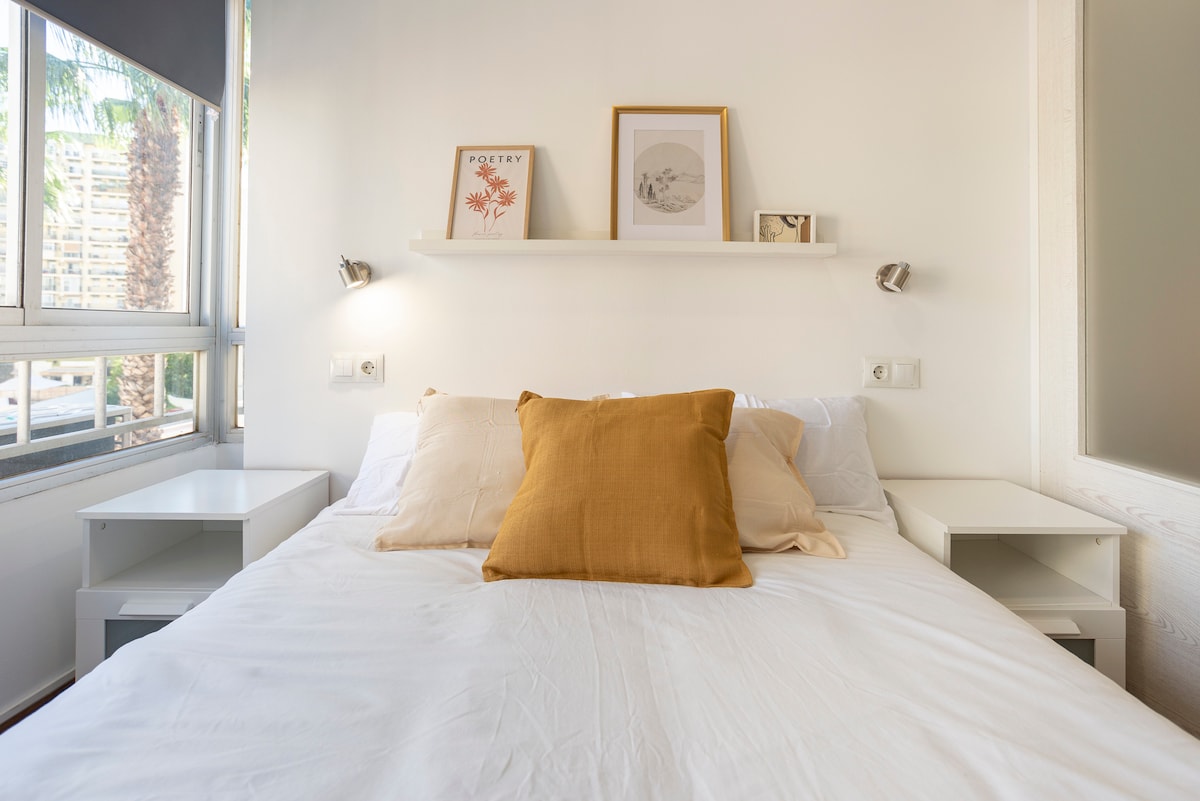 Our sea-front apartment is centrally located, perfect for couples looking to enjoy a few days in Málaga, with its beautiful beach, old town, and scenic surroundings. The apartment is spacious, bright, and offers stunning sea views. Fully renovated in 2019 and with regular updates, it features a bedroom area, full kitchen, bathroom with shower, open terrace, and living room. You'll have everything you need for a comfortable stay: a cozy bed, fast Wi-Fi, air conditioning, and a large smart TV.