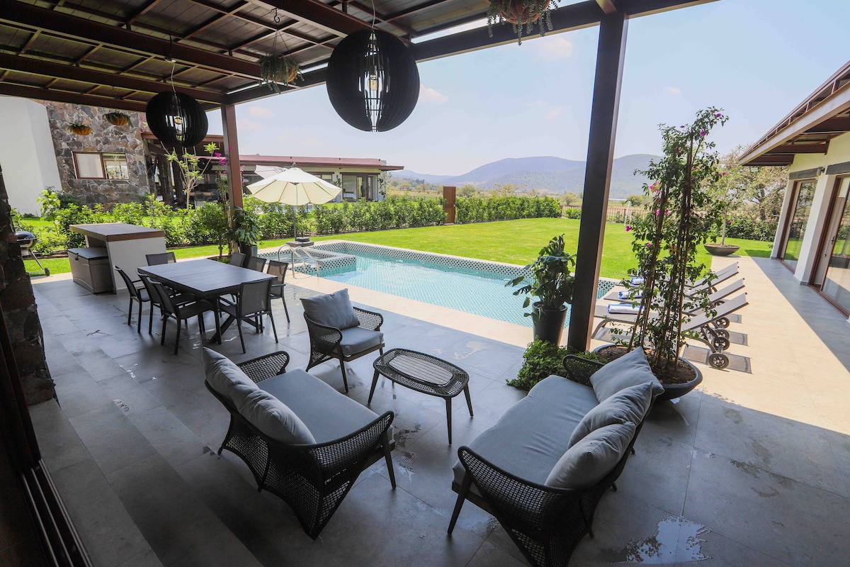 Casa Adobe is a private wellness retreat near Mexico City—designed for rest, slow living, and reconnecting with nature. Enjoy mountain views, warm afternoons by the heated pool, and peaceful evenings in the Finnish sauna or outdoor Jacuzzi. • Heated pool + outdoor Jacuzzi • Finnish-style sauna • 5,000 sqm private gardens • Gaucho wood-fire grill • Total privacy in a quiet setting Ideal for family retreats, wellness escapes, and peaceful nature stays.