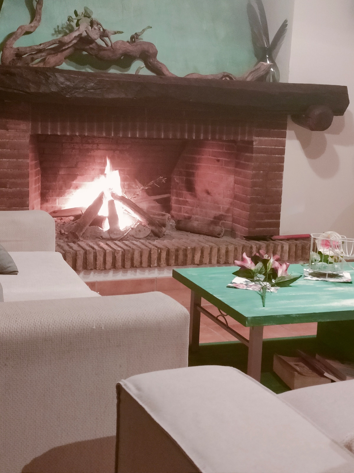 Beautiful country house away from the noise of the city. It is wonderful to spend summer evenings on any of its porches, in the large pool area or under the shade of its trees. Insertable fireplace with wood oven and heating. It is a house designed for life in nature. Fruit trees and chicken coop. that you can eat . 20 minutes from Seville by motorway. Exterior lighting. Privacy. All-terrain vehicle recommended but not always. Ask please