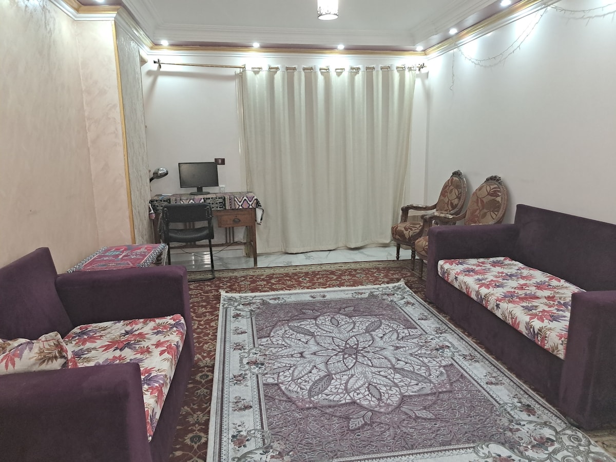 Apartmen moden dan selesa berhampiran Piramid dengan tekanan air yang kuat, air panas dan WiFi yang pantas. Tetamu Arab tempatan mesti mengemukakan ID dan bukti perkahwinan yang sah (“Arousi” atau “Arefi”) semasa daftar masuk. Pasangan asing tidak perlu mengemukakan dokumen perkahwinan. Sila hormati peraturan ini untuk penginapan yang lancar. Terima kasih, tidak sabar untuk menjadi hos anda!
