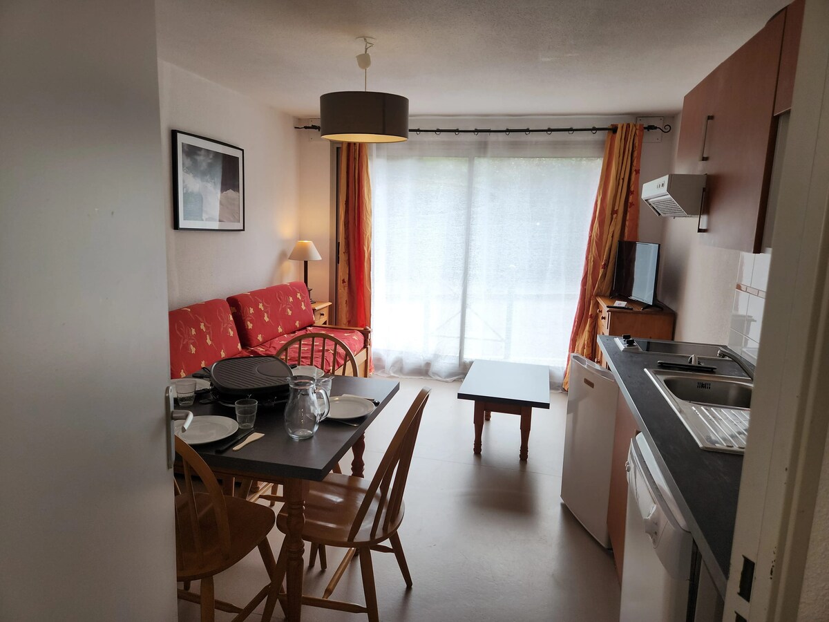 BONASCRE - AX TIGA ESTET - 4/6 ORANG KABIN T2 + DENGAN TERES - 150 meter dari cerun 50 meter mendaki 1 BILIK TIDUR + 1 KABIN SUDUT KATIL BERTINDIH + KATIL TARIK KELUAR DAPUR LENGKAP (ketuhar gelombang mikro, nespresso, mesin pencuci pinggan, mesin raclette, dll.) Bilik mandi (tab mandi) KOLAM RENANG DALAMAN WC berasingan - SAUNA LOKER SKI KELUARGA YANG IDEAL Kolam renang dan sauna ditutup antara 15 Mac dan 3 Jun dan 4-15 Disember September. cadar dan tuala tidak disediakan
