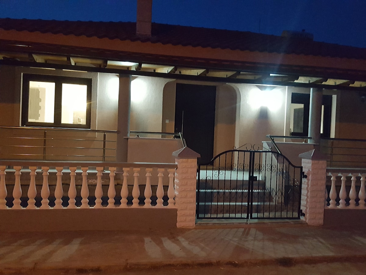 Vila cantik seluas 75 meter persegi dengan taman besar yang penuh dengan pokok, 30 meter dari pantai. Sesuai untuk keluarga dengan kanak-kanak, terletak dalam persekitaran yang selamat dengan banyak ruang dan tempat letak kereta persendirian. Terdapat dua bilik tidur, ruang tamu dengan pendiangan, dapur lengkap, barbeku luar dan sambungan wifi percuma dalam pemandangan hijau dan santai. Anda boleh mendapatkan lebih banyak gambar dan maklumat di Internet sambil melihat laman web rasmi Glyfoneri holidays. glyfoneriholidays (dot)com