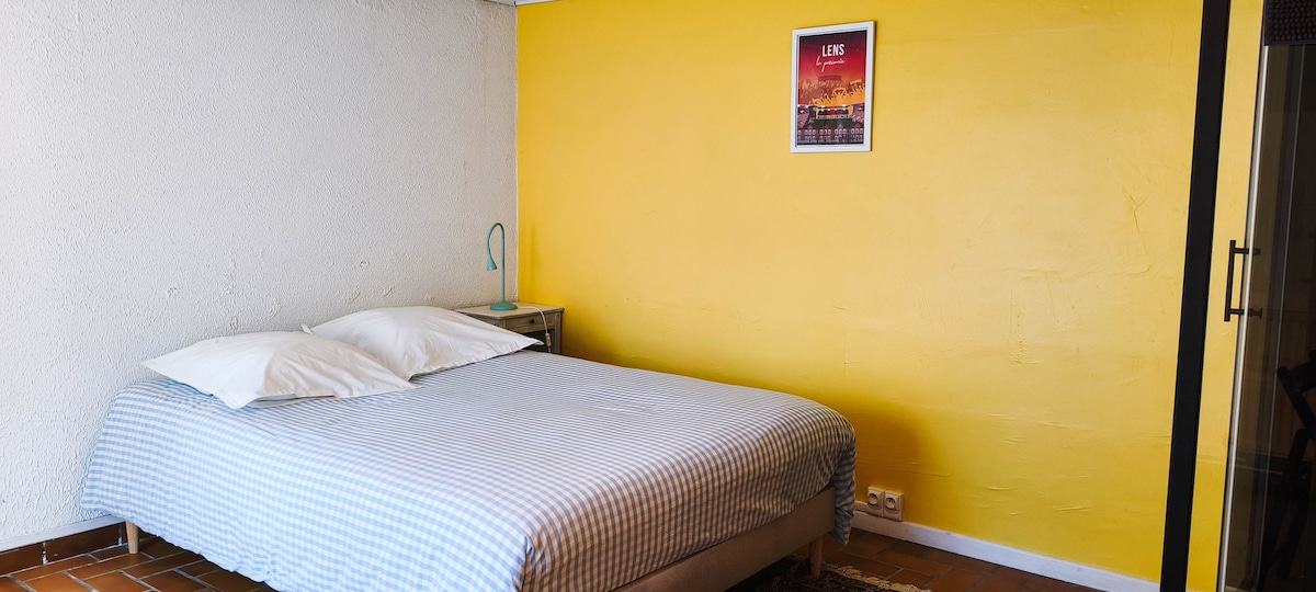 Rumah moden dan cerah ini sesuai untuk 2 orang. Ia mempunyai ruang tamu yang luas dengan dapur berasingan dan bilik tidur loteng. Sorotan? Kawasan santai peribadi dengan Jacuzzi luar untuk ketenangan sepenuhnya. Dari segi praktikal, anda mempunyai ruang letak kereta percuma. Keselesaan, reka bentuk dan kemudahan berkualiti digabungkan untuk penginapan yang sempurna. ⚽Pengangkutan ulang-alik percuma ke dan dari Match Day untuk stadium Bollaert 2 minit berjalan kaki Perhentian "kolam renang"