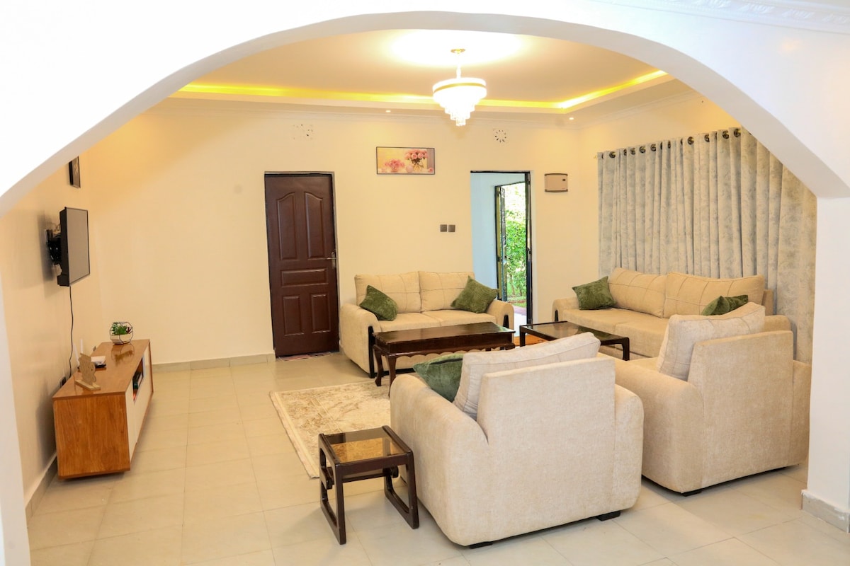 Bersantai di ruang yang tenang, bergaya, bersih dan selamat ini. Ia adalah rumah 1 bilik tidur yang luas dengan kompaun sendiri di tengah-tengah Kerugoya. Di sekeliling kami anda akan melihat teh, mencari air terjun, tempat malam yang baik dan makanan organik segar. Atas permintaan, ada chef di tapak yang anda boleh sewa untuk menyediakan semua makanan anda semasa anda duduk, berehat dan berehat Tetamu boleh menghubungi saya melalui aplikasi ama di sufuri saba nne moja, Saba moja nane, nne moja nne