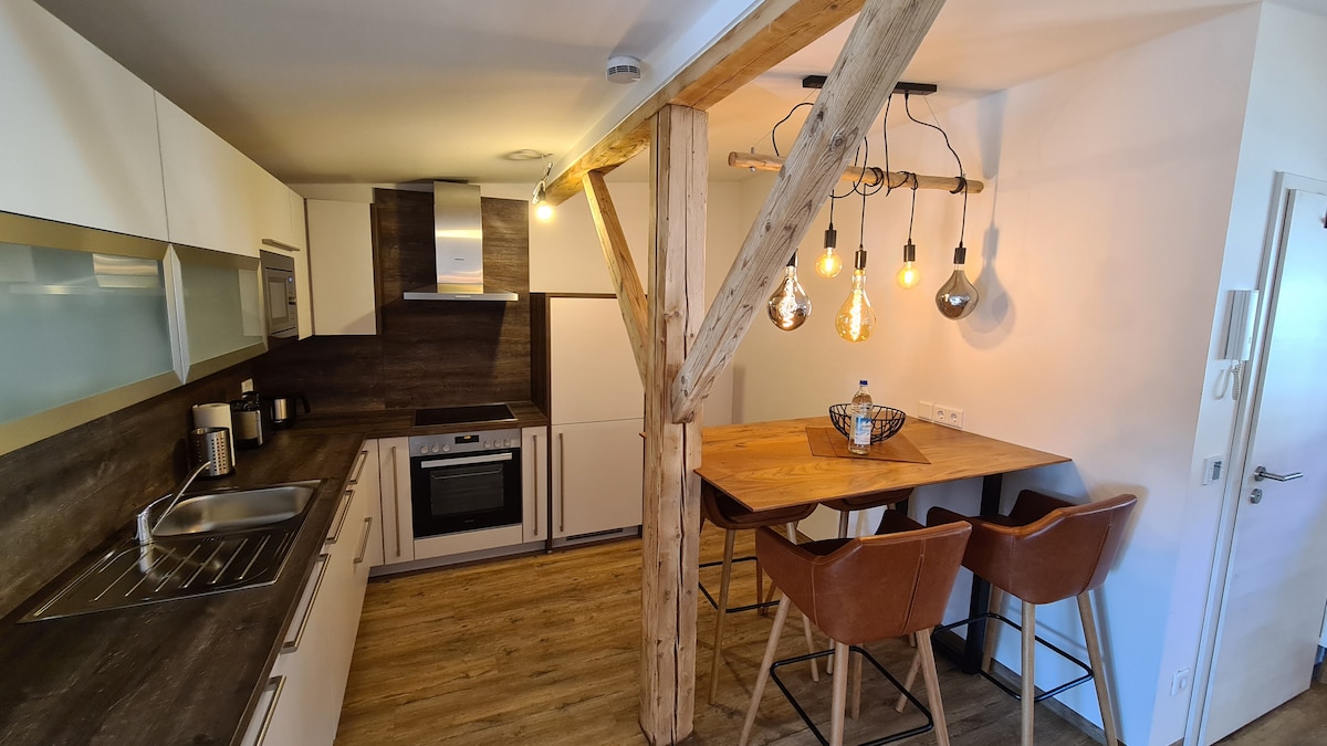 Berseronok dengan seluruh keluarga di tempat yang bergaya ini. Alam semula jadi tulen di Dreiseithof yang diperbuat sepenuhnya daripada kayu dengan kuda, ayam, dan banyak ruang untuk anak-anak anda. Terus dari penginapan anda pergi ke banyak laluan mendaki Schellenberg. Simbach am Inn / Braunau dengan semua kedai, 8 minit dengan kereta. Segitiga spa Rottal boleh dicapai di kawasan berhampiran, Burghausen, Passau, Salzburg dan Munich dalam masa kurang daripada satu jam.