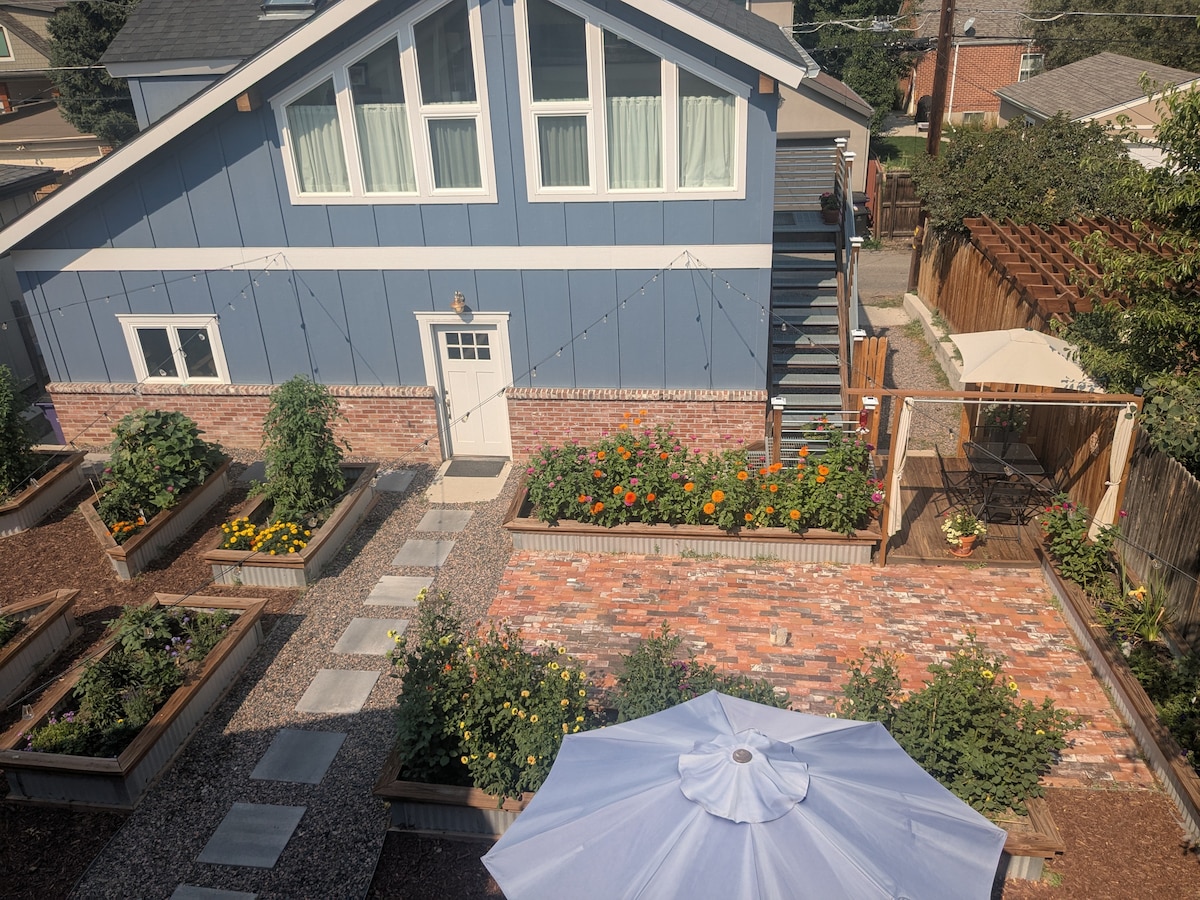 Lesen #R372700. Pintu masuk persendirian, sisi rumah. Ruang aras taman persendirian dengan banyak cahaya semula jadi. AC. Katil queen yang selesa di bilik tidur & sofa futon berkualiti tinggi yang melipat ke katil queen di ruang tamu. Bath mempunyai banyak air panas & tekanan yang hebat. 5-10 minit berjalan kaki ke rel ringan! 4 blok dari daerah Old South Pearl dengan kedai, bar dan restoran - & Wash Park untuk bersenam & memerhatikan orang ramai! Kejiranan yang menarik juga! 10 minit ke pusat bandar atau ke DTC! Mari nikmati!
