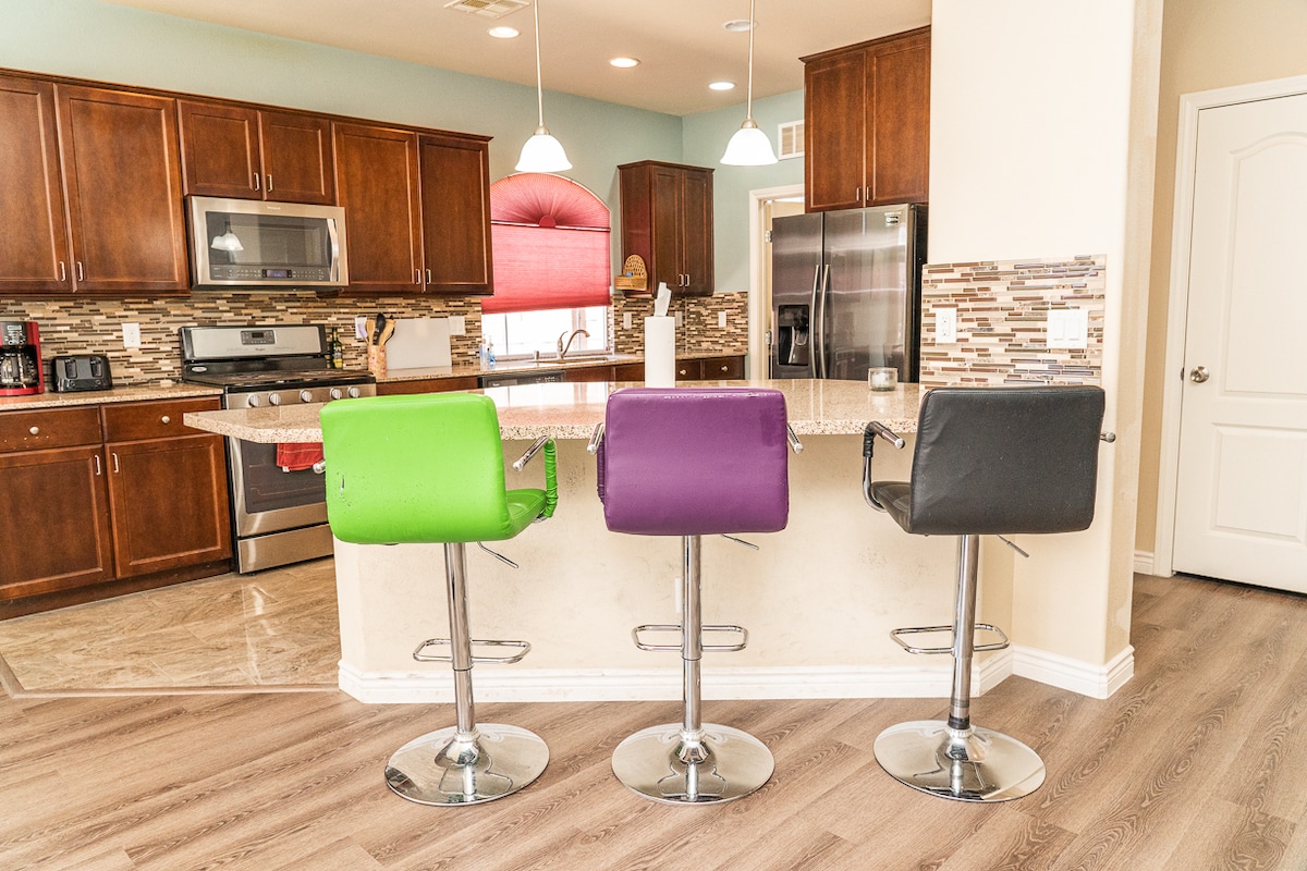 Bercuti ke oasis padang pasir 1 ekar kami di Las Vegas! Rumah kami menawarkan gabungan unik keselesaan dan keseronokan, dengan balkoni yang menawarkan pemandangan gunung yang menakjubkan dan sekilas pandang Las Vegas Strip yang meriah. 1200 kaki persegi ruang tamu untuk sehingga 4 orang, kedalaman 22โ kolam renang 4โ dengan slaid, Pickleball dan bola keranjang Nikmati padang golf par 3 pendek betul-betul di halaman belakang anda, . Alami keajaiban landskap padang pasir, hanya beberapa minit memandu dari Strip yang sibuk. Pengembaraan anda menanti di sini di syurga padang pasir ini