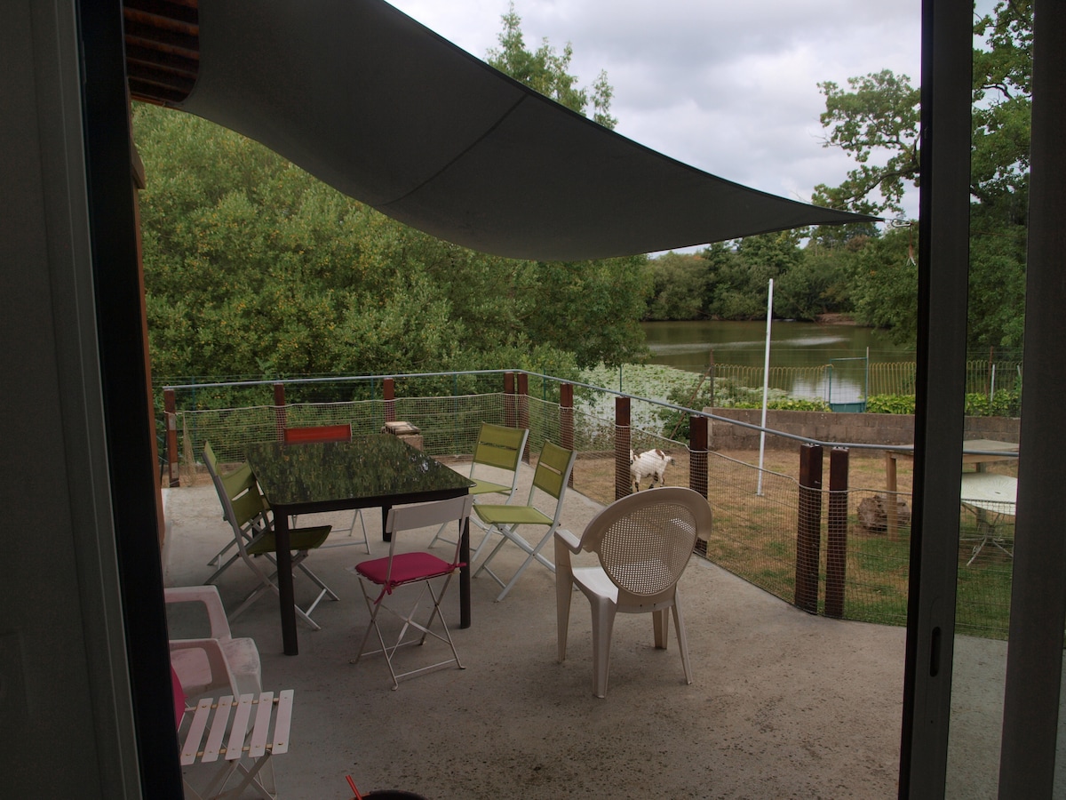 Tempat yang damai ini menawarkan penginapan yang santai dengan dapur/ruang tamu, teres, kawasan tidur tingkat atas serta kawasan letak kereta umum. Tasik Vioreau sejauh 5km memastikan memancing dan berenang, mendaki... Buku yang berbeza tersedia untuk anda. Cadar disediakan. Tuala € 5/tuala boleh disediakan jika perlu Anda boleh menyewa 2 kanu 1 tegar dan 1 kembung, pada 20 € sehari bagi setiap kanu (sediakan bar bumbung) Jaket keselamatan disediakan